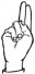На ћирилици написано БОГДАН ТРИКОШАНИН састоји се из 16 слова [?]. Исписано ћириличном једноручном азбуком за глувонеме: